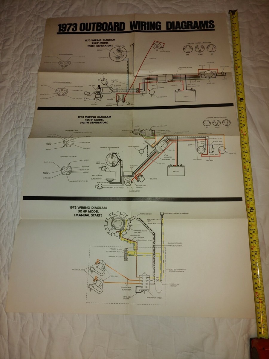 1973 Johnson Marine Boat Outboard Wiring Diagrams 25 40 50 Hp Models Ebay